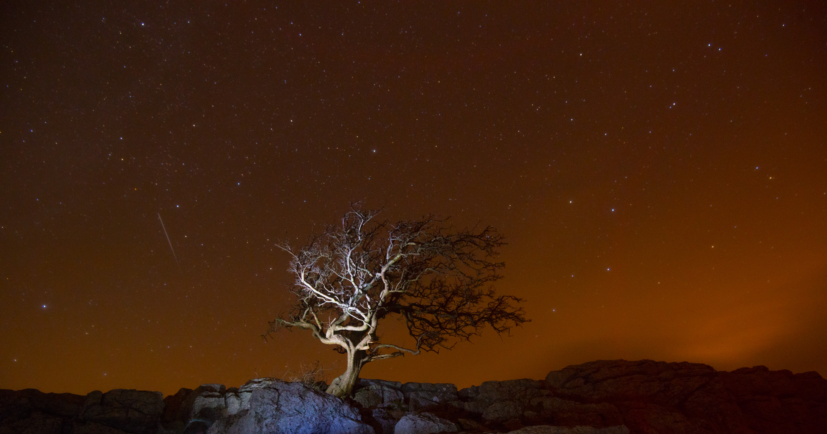 Back at the tree the light dipped without much fanfare and slowly the stars started to appear. And I started to experiment with timed exposures plus the addition of flashlight and headtorch. My idea was to paint the tree with light, to give it the presence of an important actor on a darkened stage.