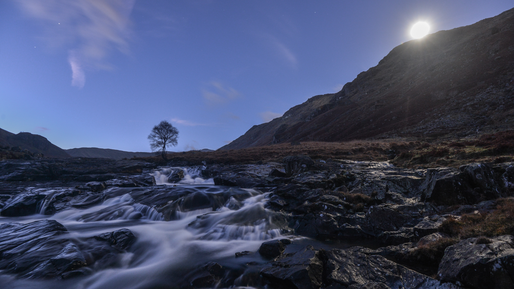 A single whip of cloud rises from the point where moon-white meets stone-black. And then the moon has gone, but it has left a line of white gold on the ridge.