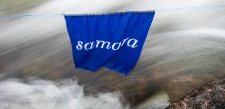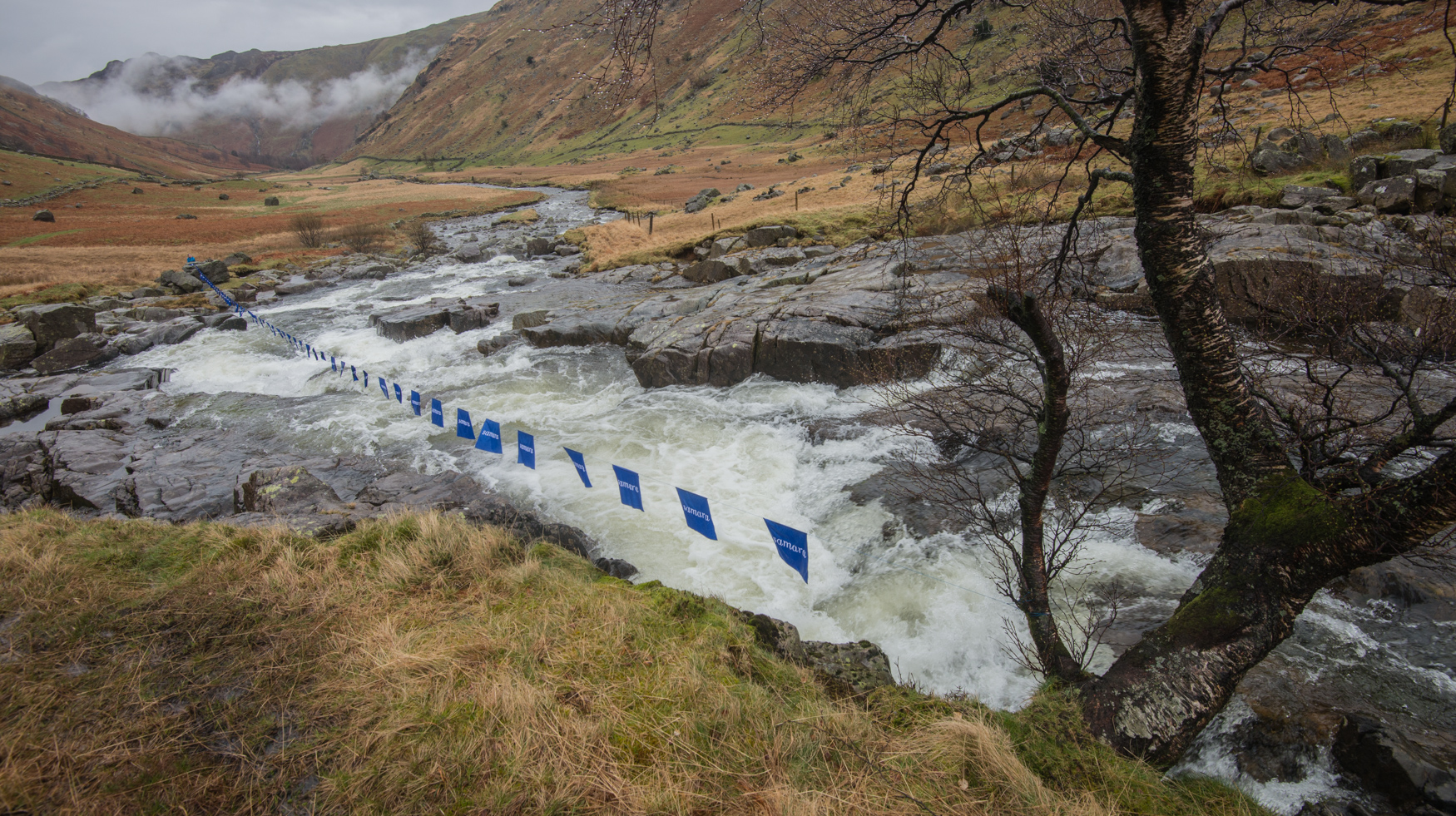 This installation, the simple stringing of the word samara, repeated, above the river, began as a way of asking how hard it is for the environment, and nature, to have a voice above the ‘white noise’ of multiple truths and globalisation in a busy twenty-first century. In the process of putting it in place it did this, but it also found relevance at a local level: the very real truth of the force of a river and one single tree, and the people who come past it day after day, generation after generation, and have their own stories to tell about a valley they know intimately.