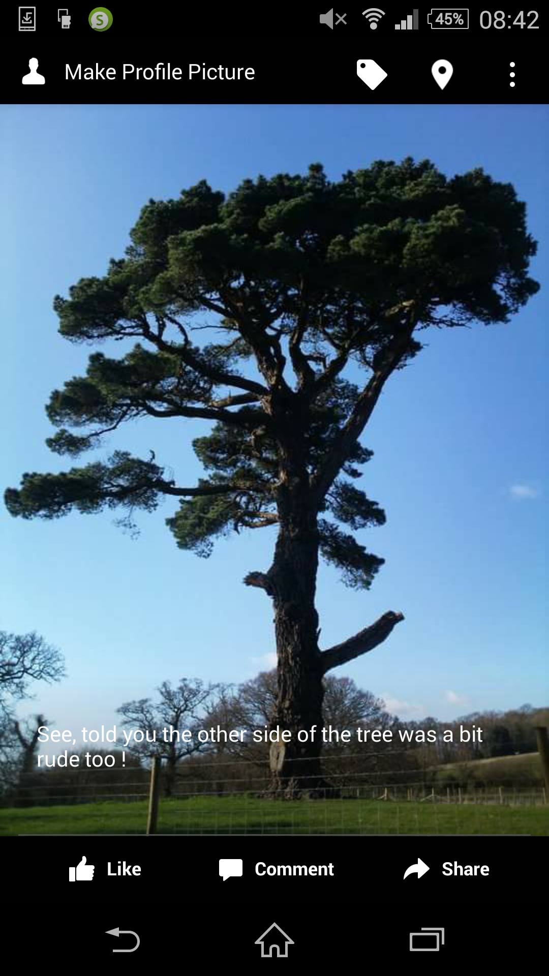 There’s also another one we walk past daily that has a long-ago broken branch that is crudely phallic, but on the other side has an old scar that is a beautiful representation of a woman, either as a torso, or zoomed in as far more obviously female. A favourite tree for my daughter and me to walk by.