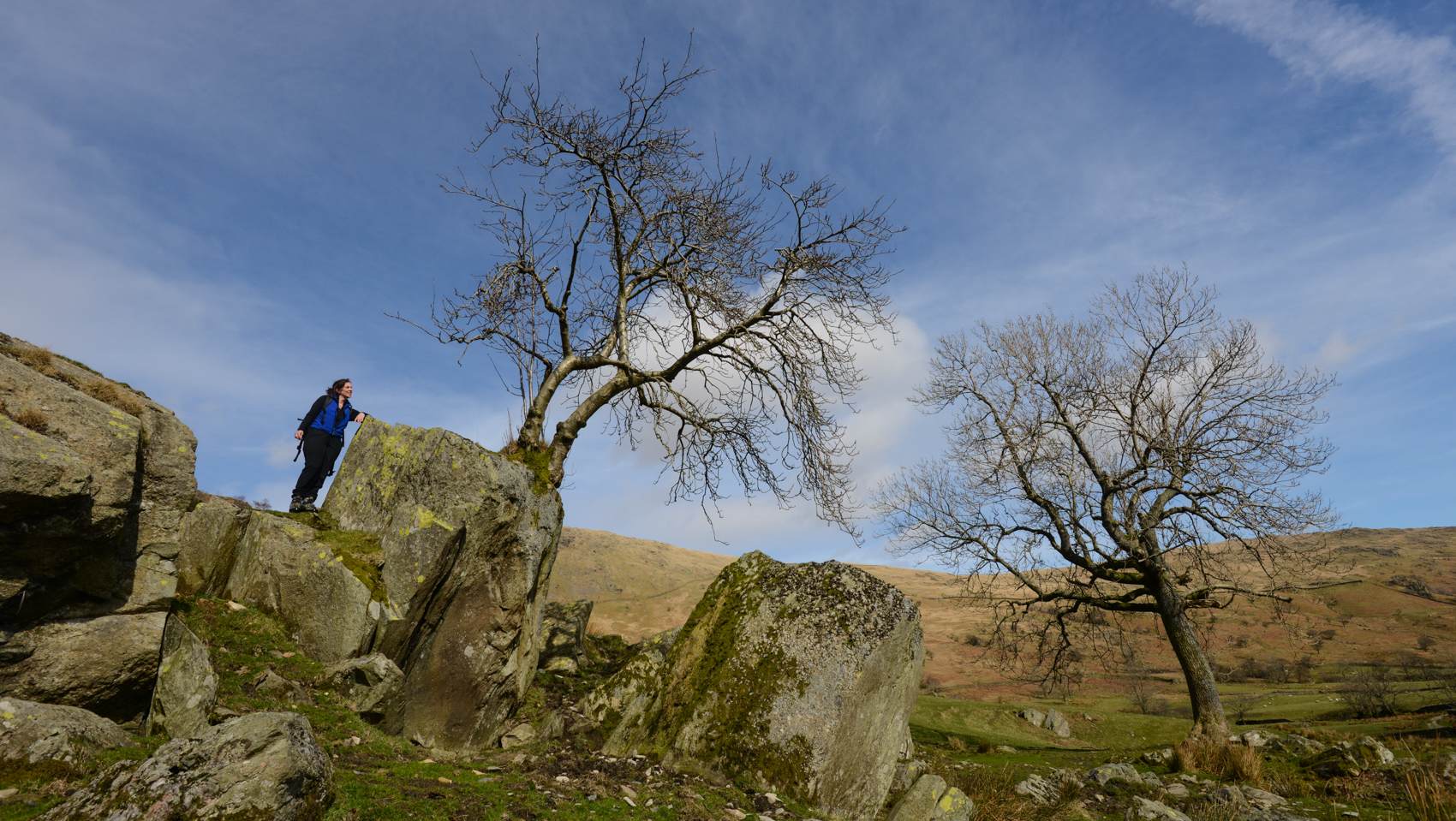 This tree took us by surprise. We know this valley well but in search of a tree had first walked up to the higher points of the Kentmere Valley, up to Kentmere Pike and Harter Fell, and come down Nan Bield pass. We’d just had an unexpected sighting of a group of young badgers bouncing around in the soft grass. It was an unusually hot day for March and we headed for a deep spot in the river and took a dip. Early in the year, yes, but refreshing and, well, it has to be done when the sun is strong.